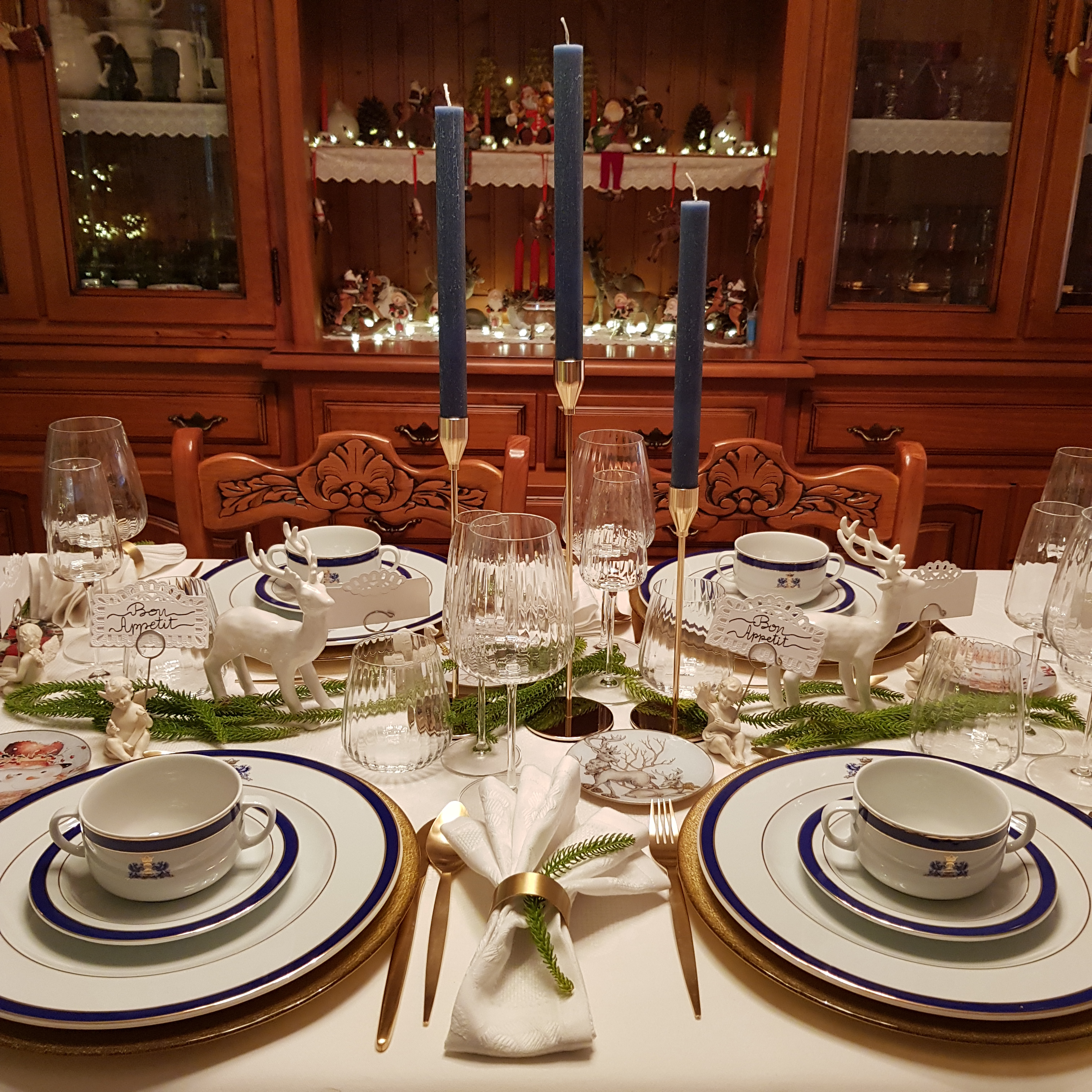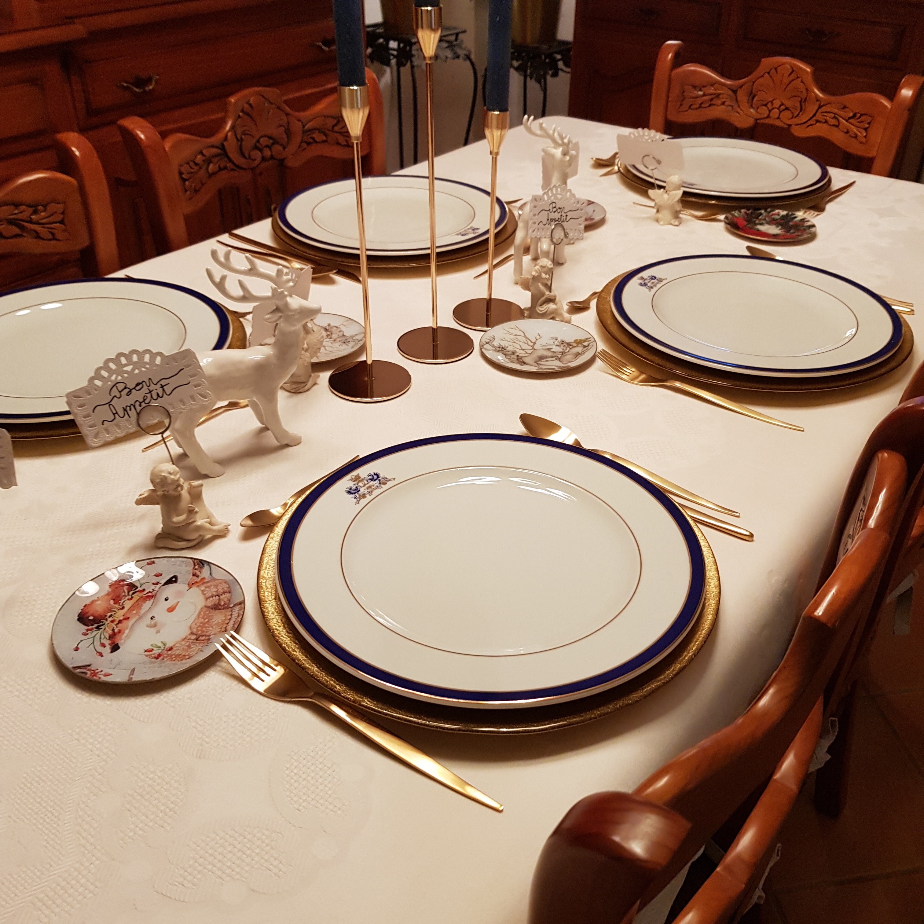 Se añaden otros complementos, como los platitos para el pan o los puestos de mesa. En esta mesa puse los ángeles a juego con la decoración del árbol de Navidad, en cuyos tarjeteros pueden escribirse el nombre de cada comensal o bien una frase como Bon Appétit para poder utilizarlos en próximas ocasiones.