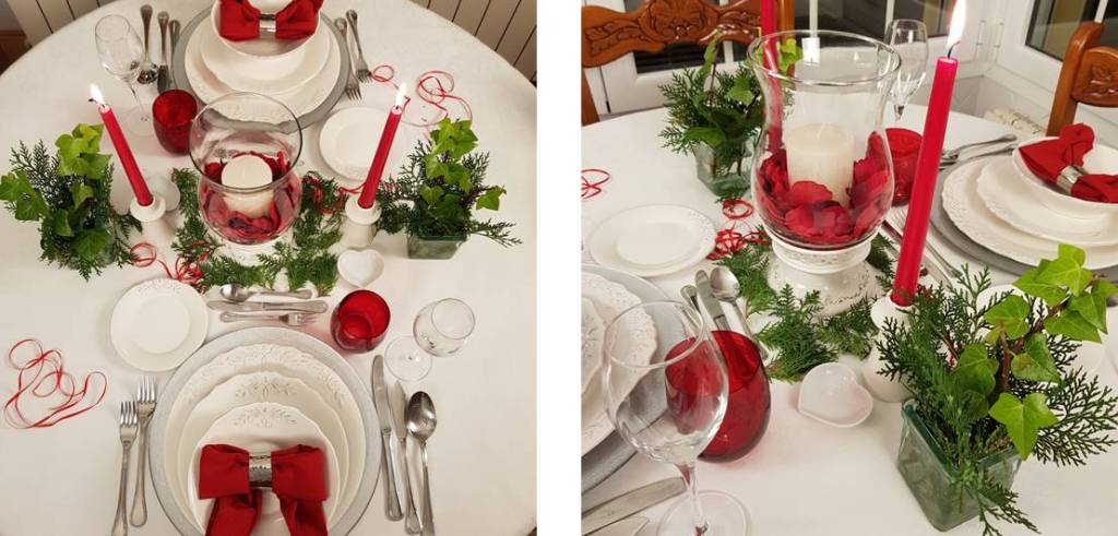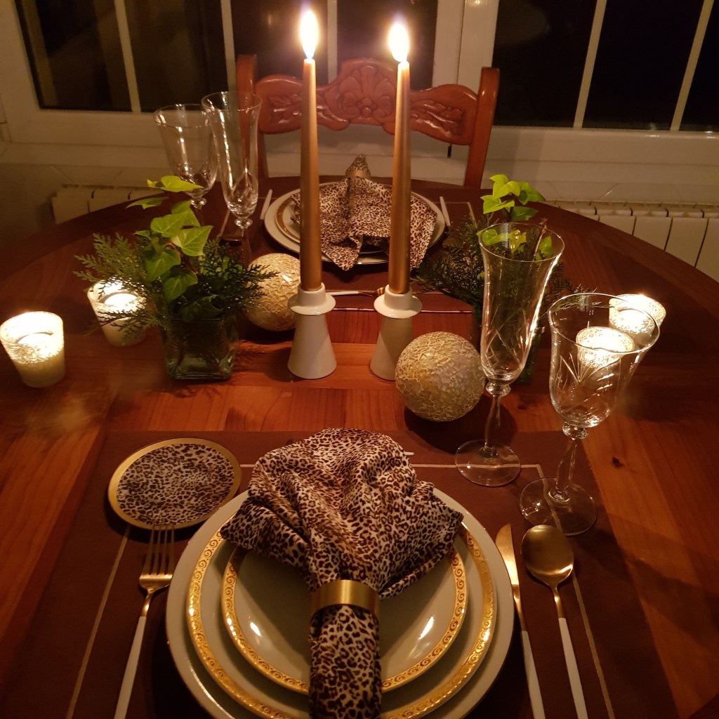 En cuanto a la cristalería unos vasos rojos serían lo más apropiado para una noche como esta, aunque como veis en mis mesas, no es necesario. Lo importante es elegir tanto en vajilla, como en cristalería o cubertería lo más bonito y elegante que se tenga y ¿qué mejor ocasión para su utilidad que ésta?. Esos tesoros que con tanto mimo guardamos en las vitrinas, bien porque nos lo regalaron en nuestra boda, o nos llegaron como regalo de cumpleaños o Navidad. Disfrutadlos pues que bien vale la pena.