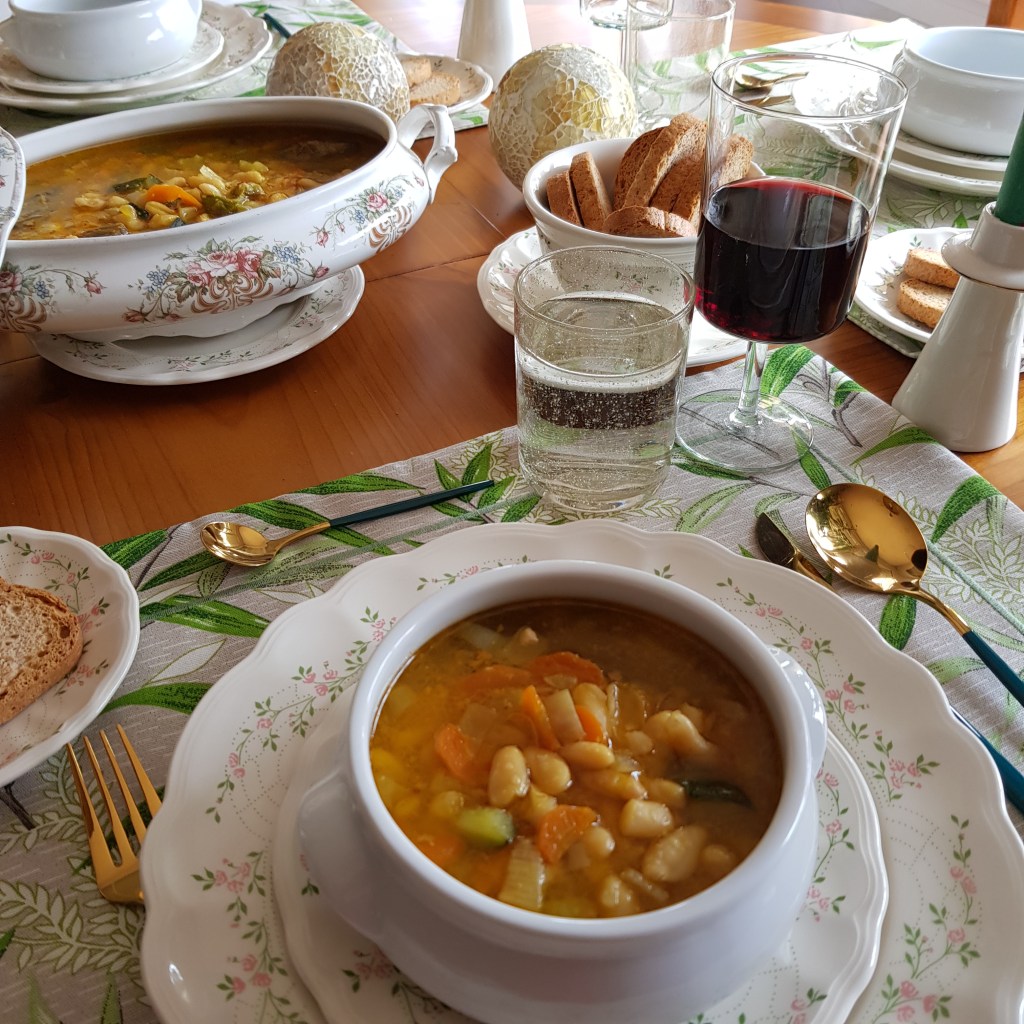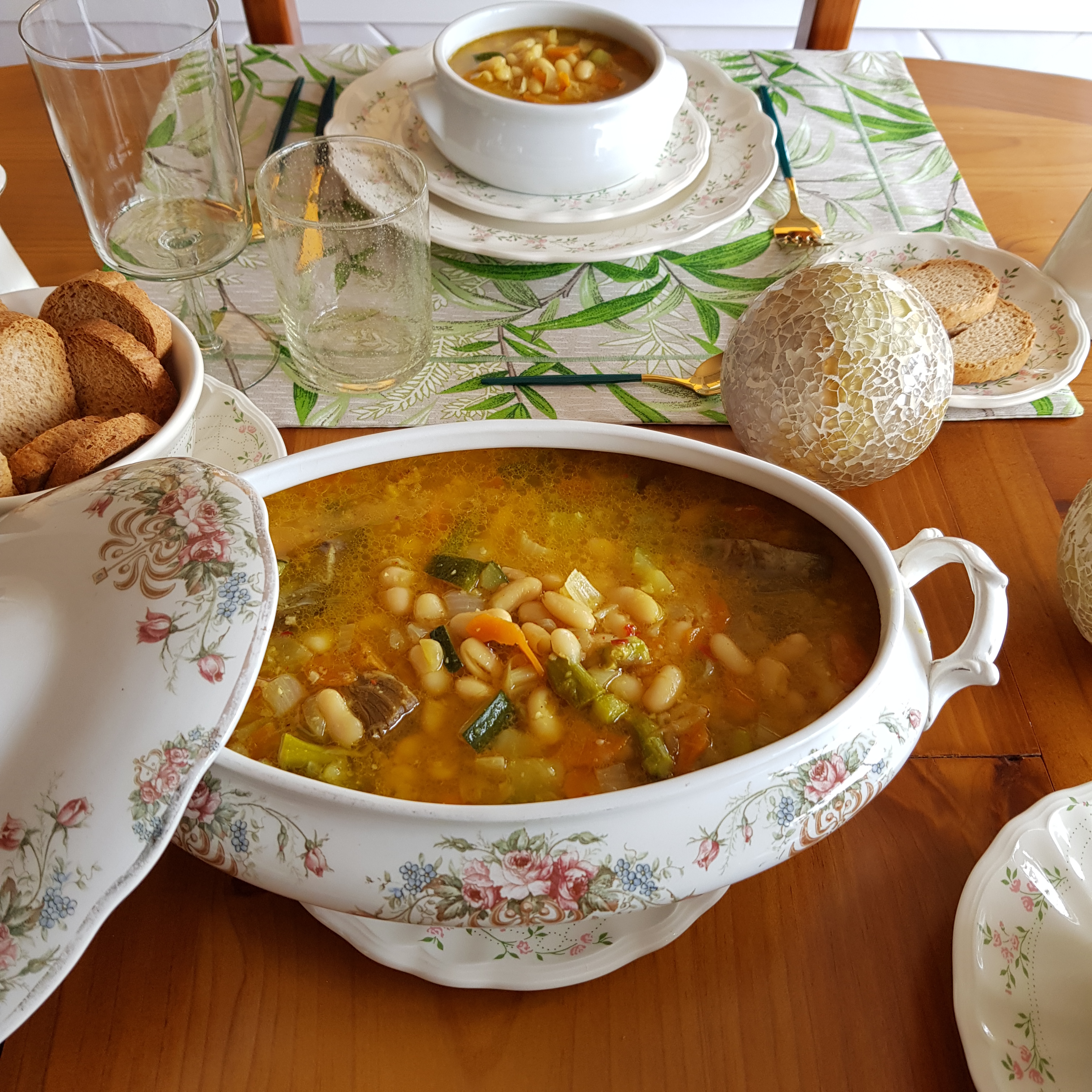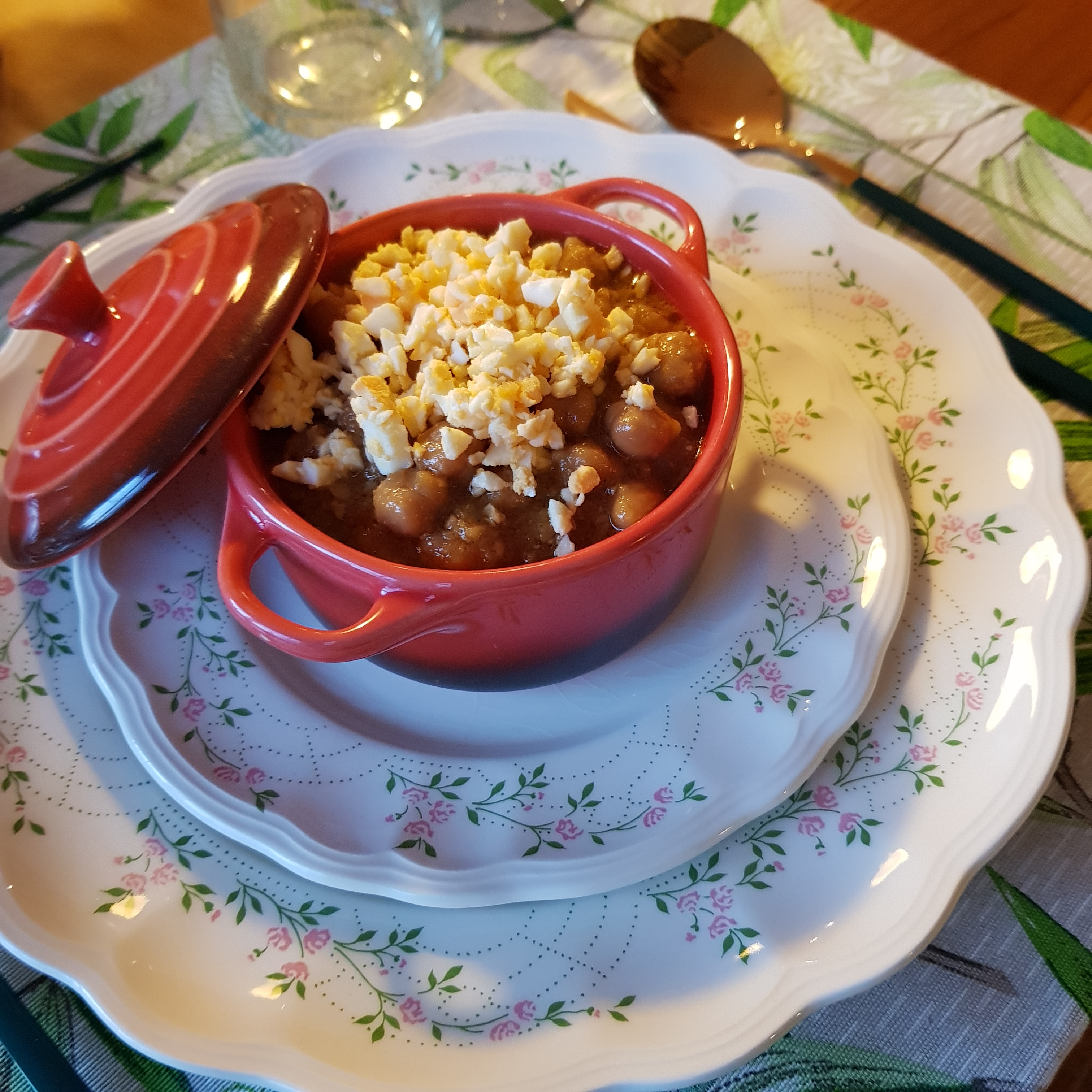 Recomiendo hacerla el día anterior, ya que el potaje se infusionará y realzará su sabor. Si es así, la picada se añadirá cuando se caliente antes de servir ya que su espesor podría aumentar con el tiempo transcurrido o bien, ya que la picada también le aportara sabor al mismo, añadir más caldo para que con ese tiempo de reposo quede en su justo espesor. Tan solo habrá que calentarlo para presentar a cada comensal.
