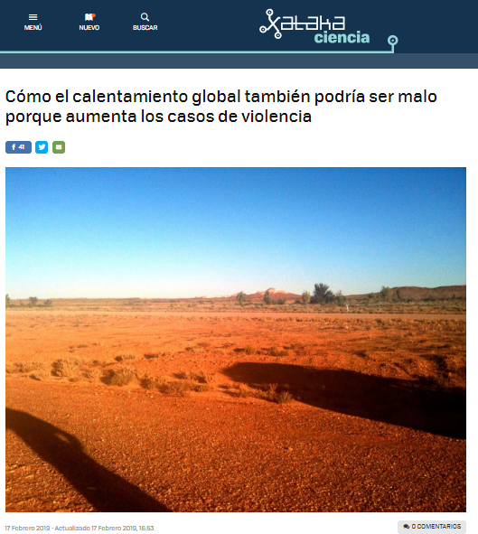 El 17 de Febrero de 2019, la plataforma Xataka Ciencia publicó un artículo en el que de forma totalmente gratuita, es decir, sin aportar una sola prueba, afirmaba que “Las olas de calor aumentan el riesgo de que se produzcan casos de violencia machista”. Mi natural querencia hacia la suspicacia ante este tipo de noticias, empezó de inmediato a darle vueltas al asunto, intentando colegir cuáles podían ser los criterios utilizados para llegar a esa conclusión. Realmente, ¿disponemos de información suficiente para establecer dicha correlación? ¿Desde cuándo tenemos datos sobre la violencia de género? Frente a los factores sociales, económicos y políticos que determinan la educación y la legislación contra la violencia, ¿el componente climático puede tener alguna relevancia? Y llevando los puntos de vista de un geólogo suspicaz hasta extremos risibles, ¿se ha podido comprobar si durante los periodos en que el clima se enfrió, como ocurrió por ejemplo durante la Pequeña Edad de Hielo en los siglos XVI y XVII, la violencia de género disminuyó? Dudo que los registros históricos de la Edad Moderna permitan establecer datos fiables al respecto. Y si los hubiese, dadas las condiciones sociales de la época, es posible que la violencia de género fuese mucho mayor que en la actualidad, por muy gélido que fuese el clima reinante.