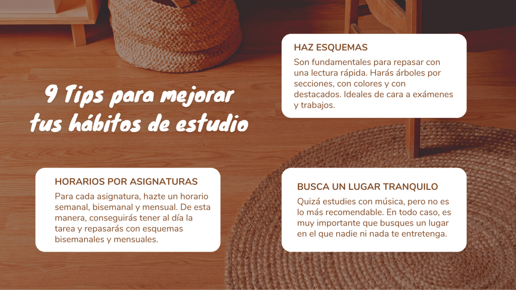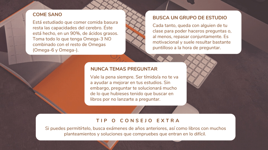 Como ya he comentado antes, te avanzaré 9 tips para mejorar tus hábitos de estudio. Es posible que, alguno ya lo estés usando. Pero, también puede que ni los hayas contemplado con anterioridad. Ahí van (y recuerda que hay uno extra).