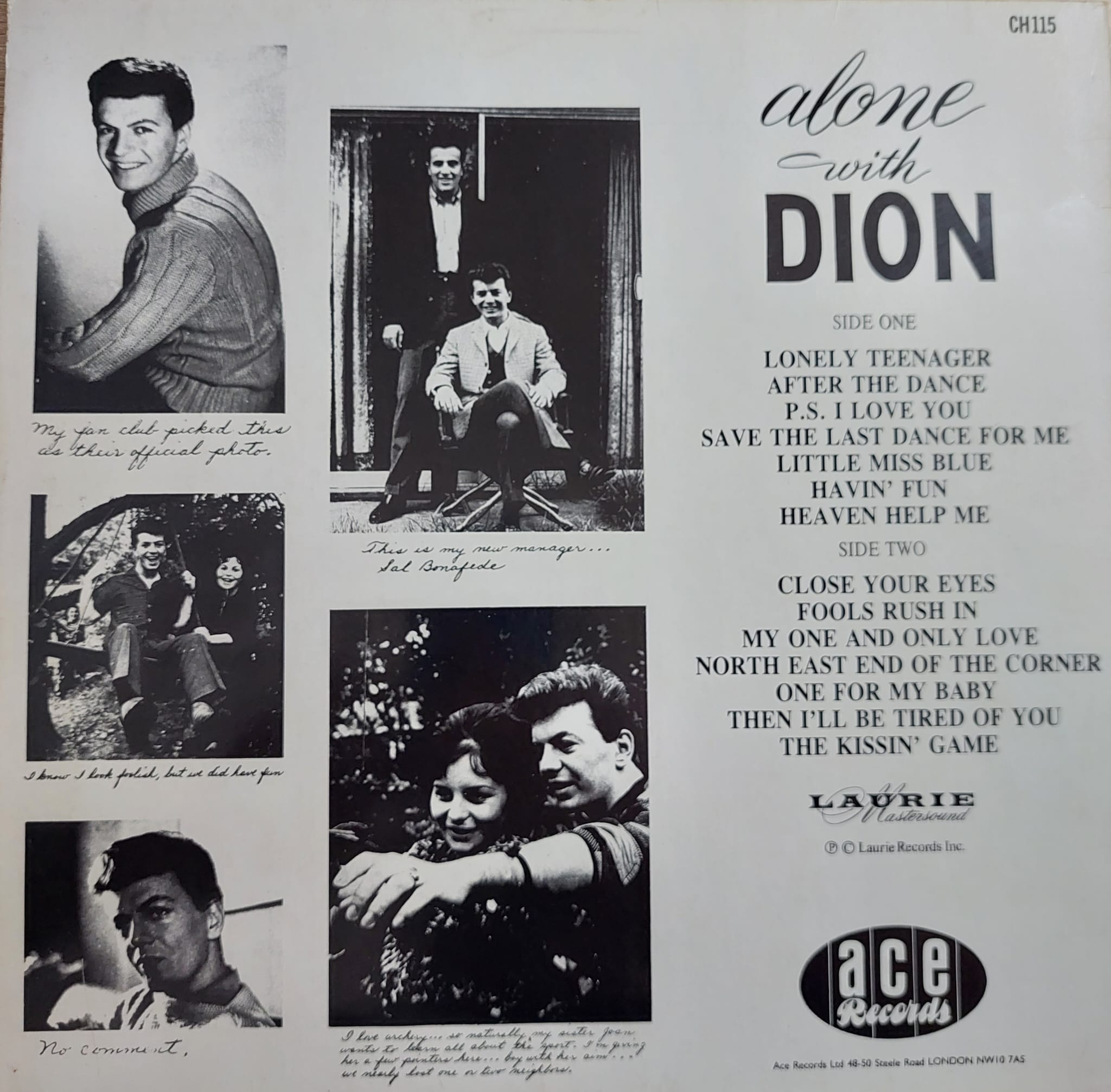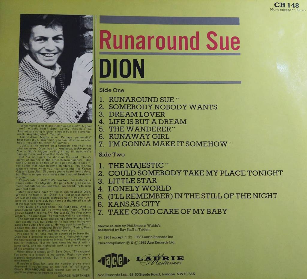 A principios de 1961 salió su primer álbum con Laurie Records, Alone with Dion, un trabajo más intimista y maduro que lo grabado anteriormente con The Belmonts, pero que no tuvo demasiado impacto. En cambio, el éxito devino al recuperar a un antiguo colaborador de su anterior etapa que marcaría un antes y un después en la carrera de Dion. También natural del Bronx, su amigo Ernest Peter Ernie Maresca había trabajado con él componiendo el tema No One Knows, que llegó al puesto #19 en el USA Billboard de 1958, y con el que desde entonces mantenía una buena relación laboral y personal. Fue Ernie Maresca quien compuso junto a Dion dos de las canciones que han quedado en el imaginario colectivo como referentes de una época, Runaround Sue y The Wanderer, incorporando las estupendas voces de The Del-Satins (otra banda neoyorkina de doo-wop ítalo-americano) en los arreglos.