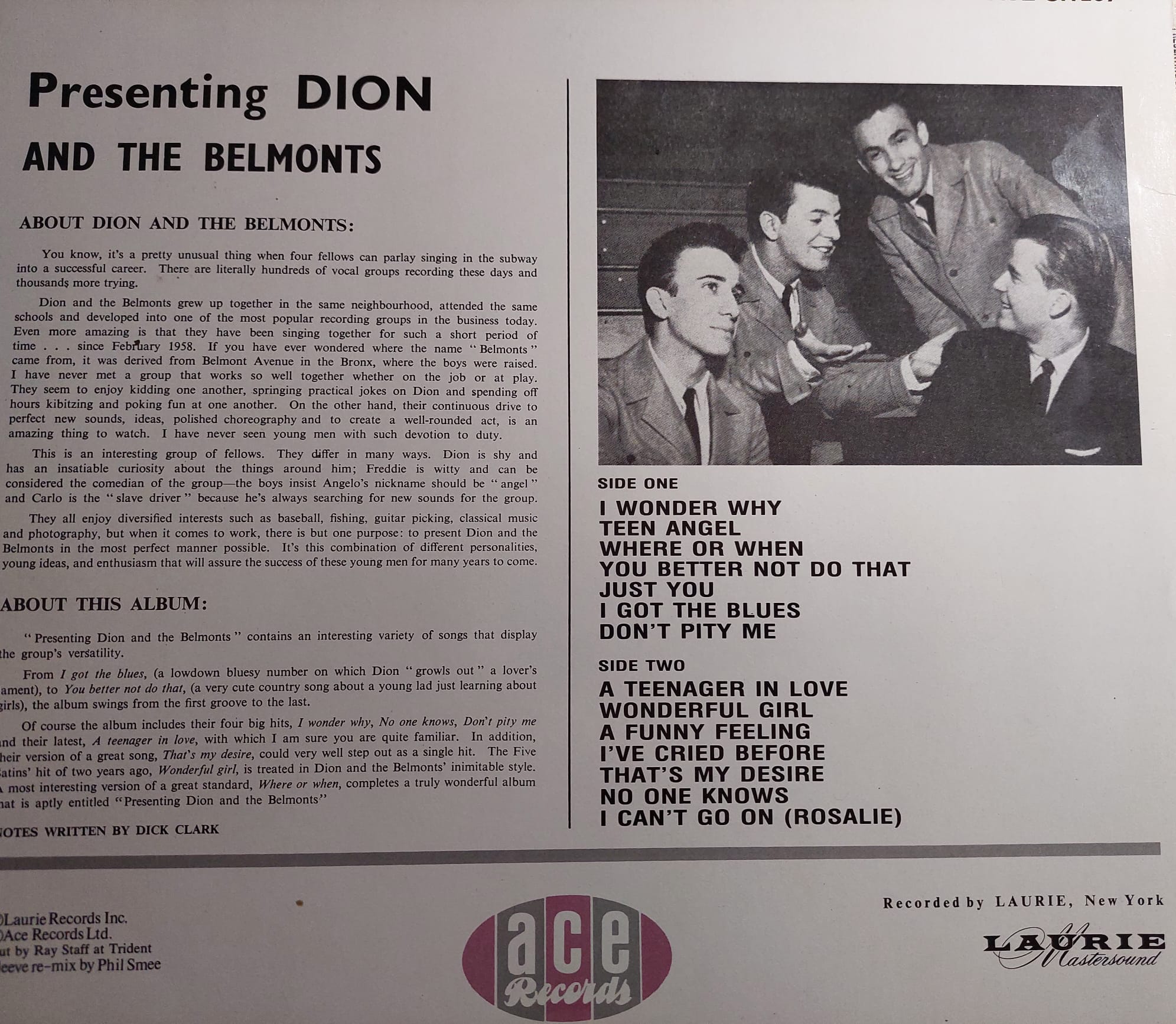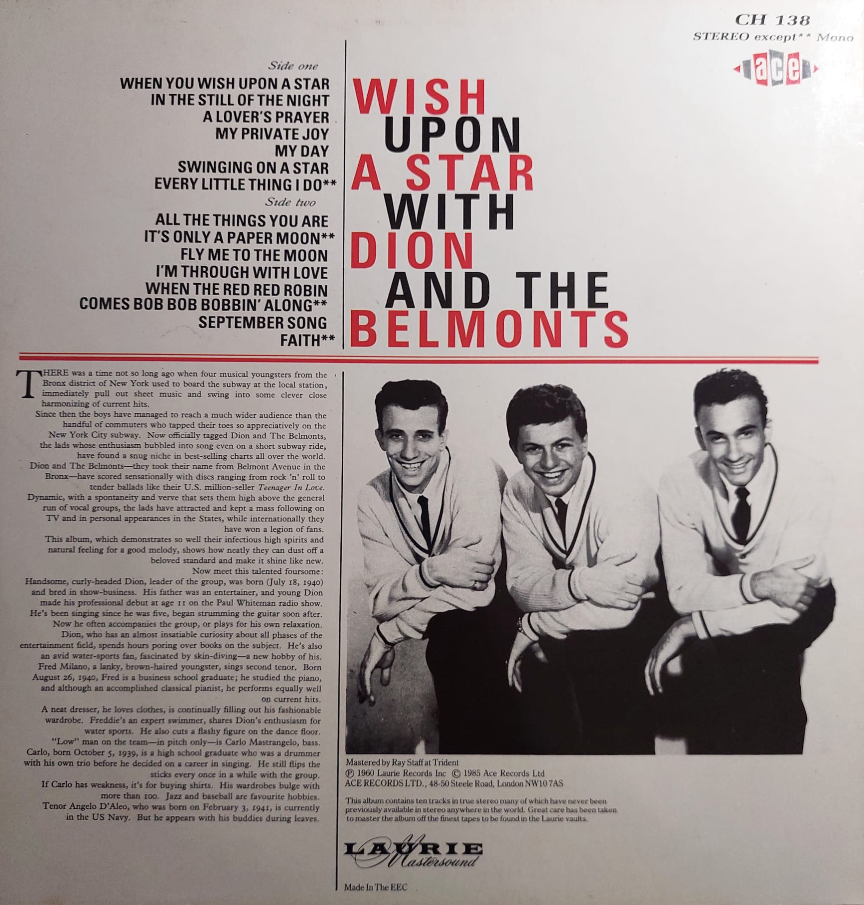 Corría el año 1957 cuando en el camino del talentoso Dion DiMucci se cruzaron otros tres chavales de una banda ítalo-americana rival, los Imperial Hoods. Sus nombres eran Fred Milano, Carlo Mastrangelo y Angelo D’Aelo, siendo éste último el único que tenía nociones de canto.