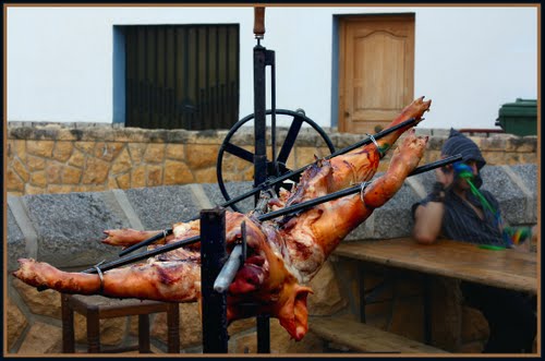 Segundo plato: asado, pavos reales con apio, paté de capones y capones al vino.