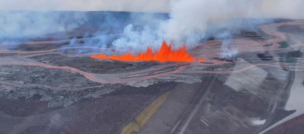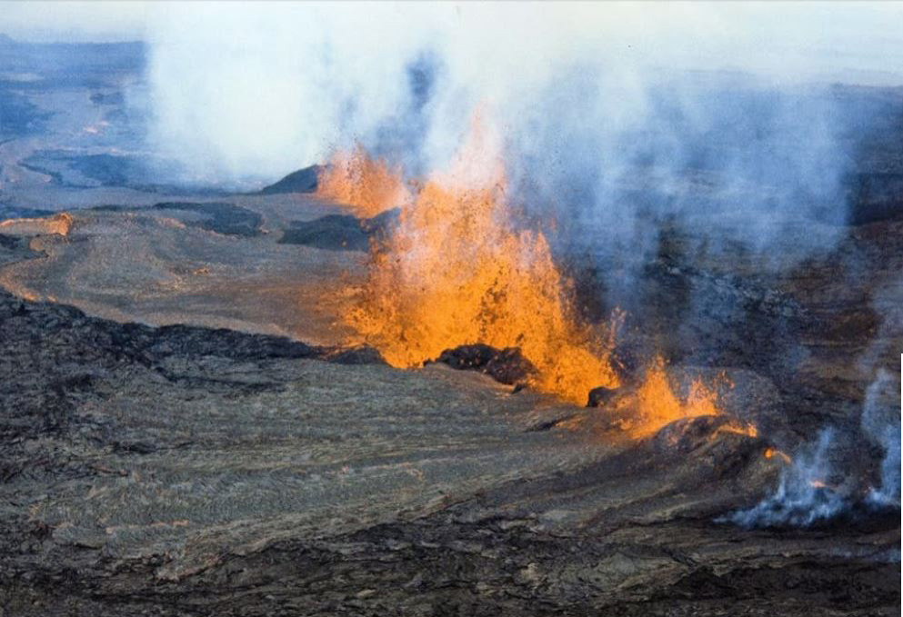 Figura 2.-Vista aérea de la salida del magma por la fractura abierta en el “Northeast Rift Zone” de Mauna Loa.