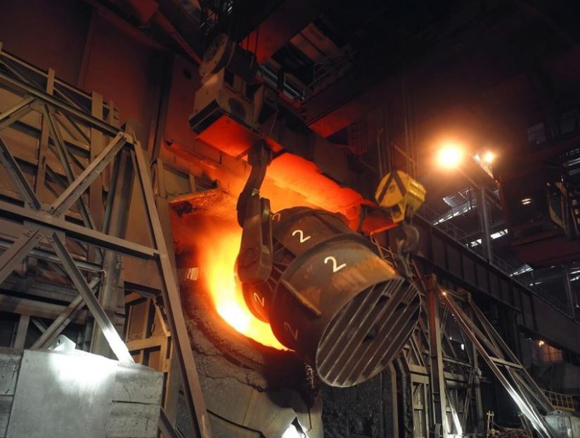 Figura 7. Colada de arrabio (hierro fundido recién salido del alto horno) entrando en los convertidores