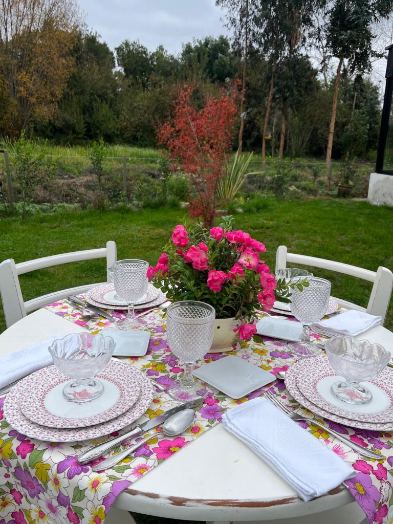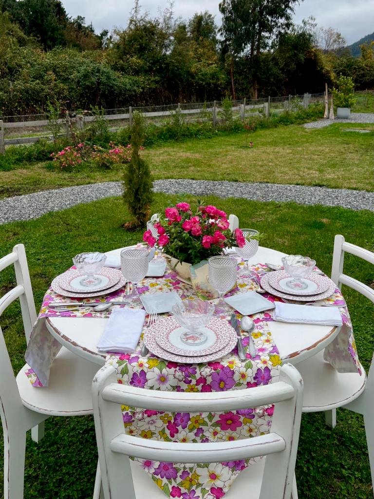 Cecy, tan romántica como creativa, sueña con una mesa en el jardín donde pasar la tarde con sus amigos. Haría un centro de mesa con unas fragantes flores recién cortadas y copas de bicos como las que apasionaban a la Sra. Craven. Le pondría unos preciosos caminos de mesa con flores, para darle belleza y alegría a esa mesa para compartir. Añadiría unos maravillosos platos también floreados, que le darían suma elegancia a esa bonita mesa con la que soñaba.