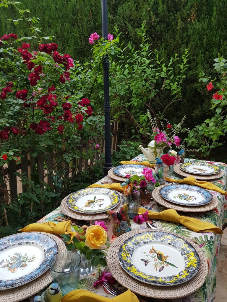 Y, por esa magia y poder que otorga El jardín secreto, podemos ahora contemplar la mesa tan bella y armoniosa que Cecy se permitió soñar e imaginarla con sus amigos celebrando en ella sus deseados encuentros en las divertidas tardes de primavera. Y disfrutar todos juntos ese atractivo y espléndido jardín en primavera, que con tanto esfuerzo e ilusión habían conseguido.