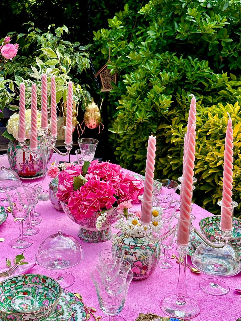 Su pasión le hace soñar con una mesa situada en un tranquilo enclave del jardín, con mantel fucsia en contraste con el verde de la vegetación. Le pondría una vajilla de Macao, como una que la Sra. Craven trajo en unos de sus viajes, a juego con los pequeños tibores, que utilizaría como jarrones colocando hermosas orquídeas para darle ese toque de alegría, distinción y belleza al decorar su mesa.