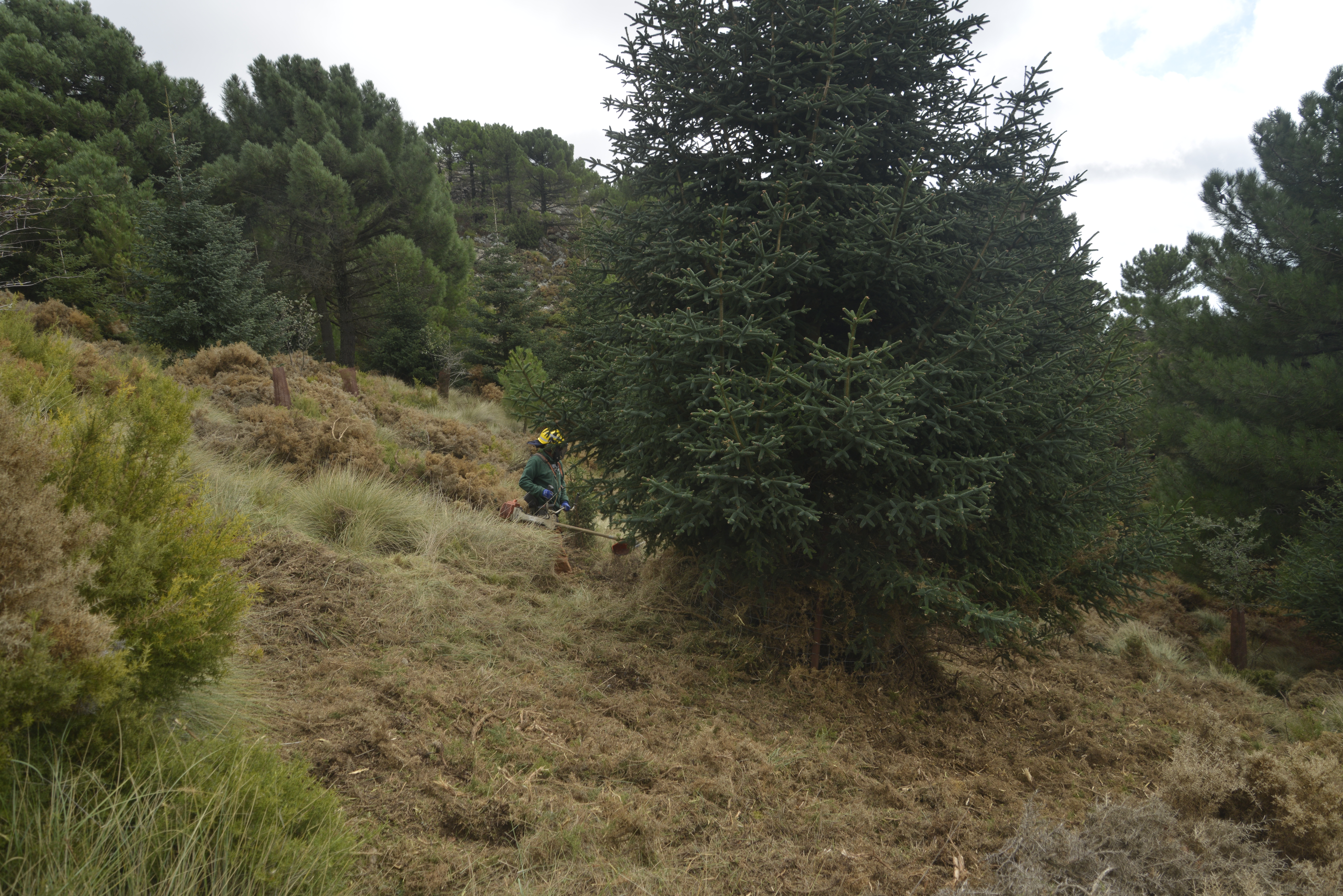 Conviene despejar el matorral que circunda los pies de abeto. La existencia actual de herramientas adecuadas, como el rodete de trituración facilita la actuación.