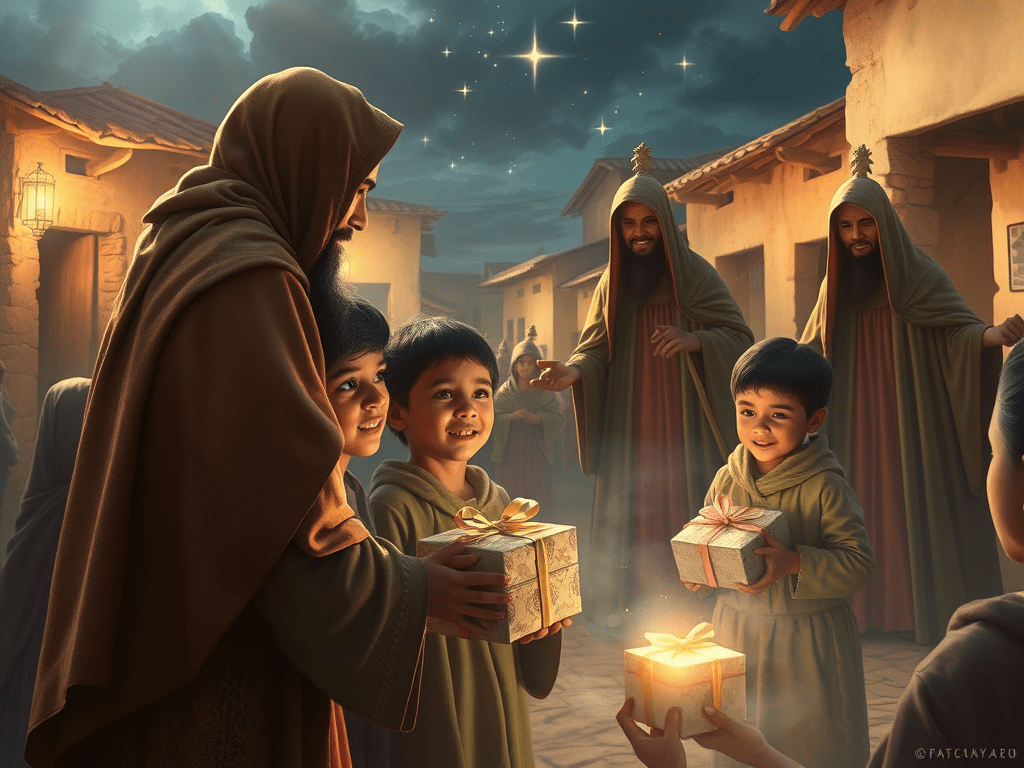 El día esperado llegó, y los niños de la calle Esperanza se reunieron con ilusión en la pequeña plaza de su pequeña aldea, donde Los Magos de la Esperanza (así llamaban a los Reyes Magos hasta entonces) les entregaron regalos envueltos con cariño. Sus ojos brillaron con una chispa de felicidad que pocas veces conocían.