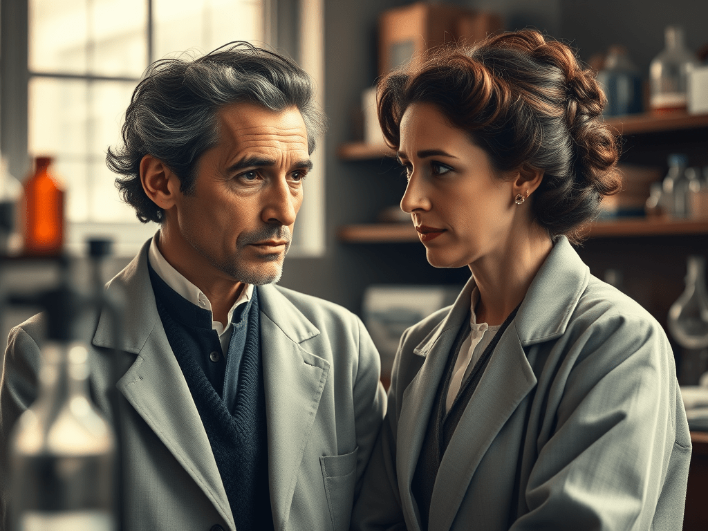 Marie y Irène eran menos finas y elegantes y, sin duda, menos atractivas que sus cónyuges, sí. Pierre, el marido de Mme. Curie, era un hombre mayor que ella, pero era un señor de buen ver: bien vestido, barba cuidada… Por su parte, Frédéric, el de Irène, era un hombre apuesto, también elegante y afeitado con cuidado, hablaba con mucho gusto (no en vano fue fundador del Frente Nacional francés, así como Alto Comisionado para la Energía Atómica o Director del Centro Nacional de Investigación Científica ―entre otros cargos).
