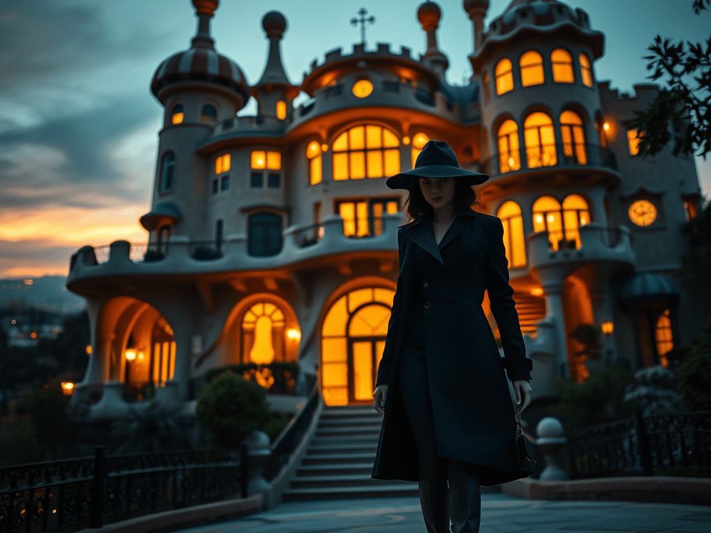 Al llegar, Liz quedó boquiabierta ante la magnificencia de la propiedad. La mansión era un tributo viviente al genio de Gaudí: fachadas ondulantes, mosaicos multicolores y formas orgánicas que parecían cobrar vida bajo la luz del atardecer. La detective, conocida por su infalible audacia y sus piernas fuertes que le permitían perseguir a cualquier sospechoso por las empinadas calles de Barcelona, por caminos que ni aquellos coches conseguían circular, sintió que incluso ella necesitaría un mapa para navegar por los intrincados jardines y pasillos de la residencia.