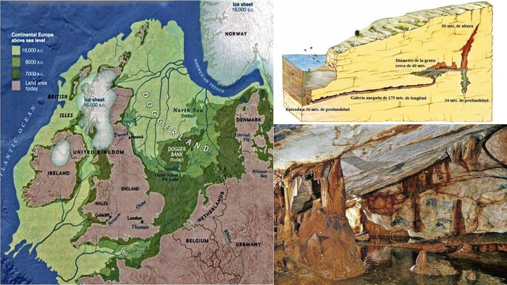 En el Banco de Dogger, situado a unos 20-30 metros de profundidad entre Escocia y Holanda, los pescadores encuentran en sus redes con cierta frecuencia huesos de mamut y útiles de piedra, porque hace unos 10.000 años era todavía tierra emergida y hábitat adecuado para nuestros ancestros cromañones. Los mismos que decoraron con pinturas rupestres la gruta de Cosquer, en la costa mediterránea francesa, y cuya única entrada está hoy situada 20 metros por debajo del nivel del mar.