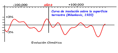 E. — Como nos suele suceder, pues nos conocemos hace tiempo, acabado yéndonos un poco por las ramas y se nos está acabando el tiempo. Pero no podemos terminar sin responder dos preguntas que consideramos esenciales. En primer lugar, si no es el CO2 el responsable del calentamiento global, ¿cuáles son las causas de los ciclos climáticos? Pues el factor fundamental es el calor que nos llega del Sol, que no es constante y está sujeto a muchas variaciones. Por lo tanto, son los parámetros que pueden modificar esa energía los que controlan el clima. En primer lugar, las variaciones de la órbita solar, que con ciclicidades de miles de años, tal y como fueron descritas en el siglo pasado por Milankovitch, cambian el ángulo de incidencia de la radiación respecto de la superficie de la Tierra, y por lo tanto, la cantidad de calor recibida por unidad de superficie.