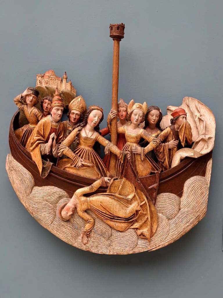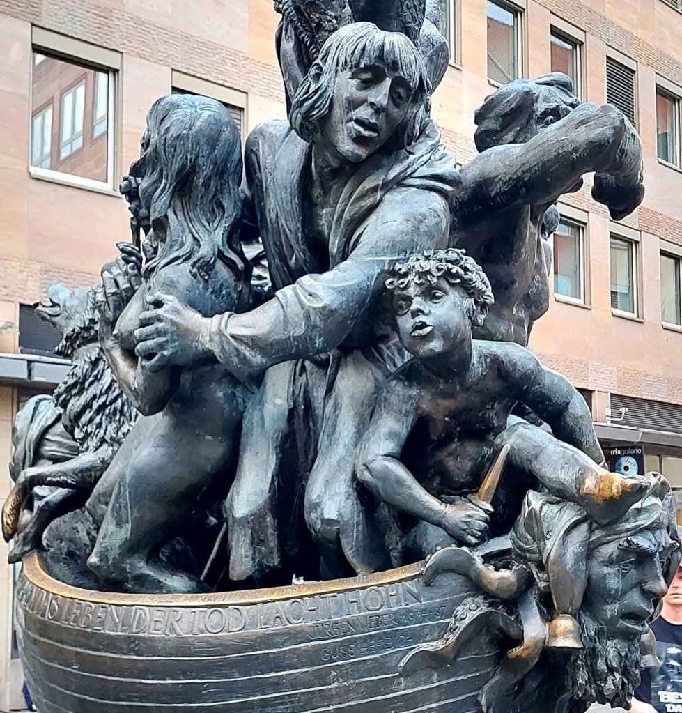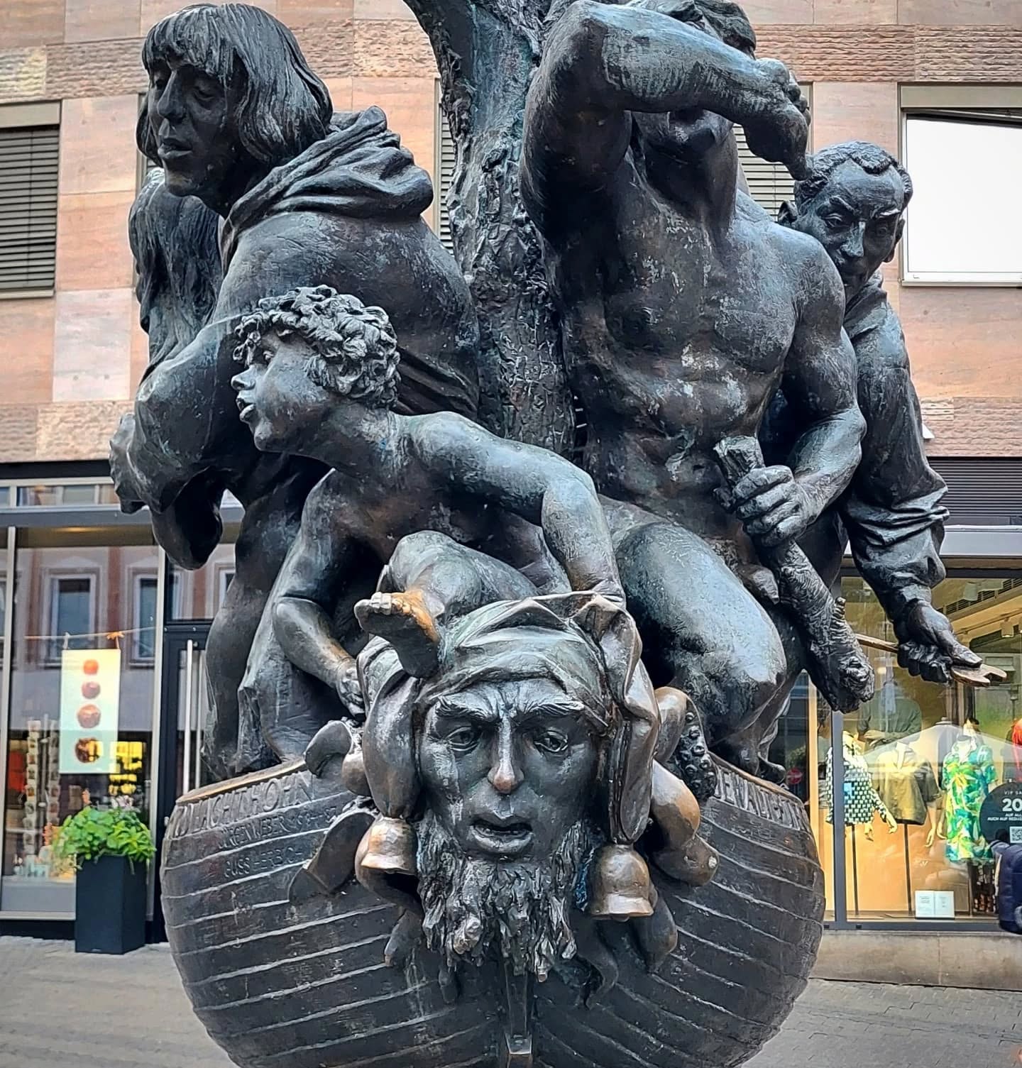 Antes de cruzar el Museumbrucke se encuentra otra singular escultura de Jürgen Weber que se inspira en la litografía de Durero sobre la obra de Sebastian Brant llamada Stultifera Navis (Das Narrenschiff en alemán), publicada en Basilea en 1494. Desde Adán y Eva hasta nuestros días, este polémico escultor tampoco deja indiferente a nadie que pase por su lado…