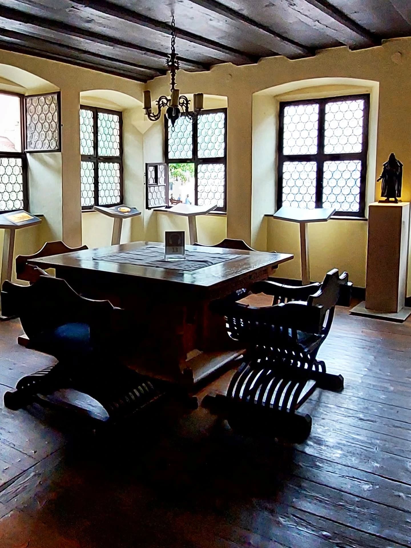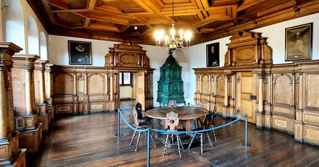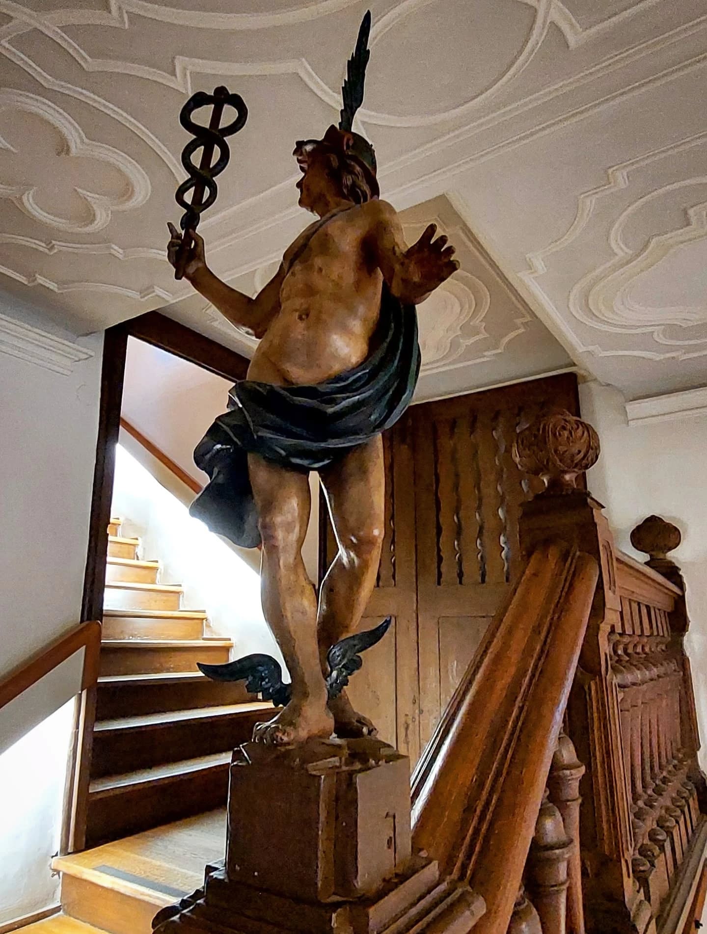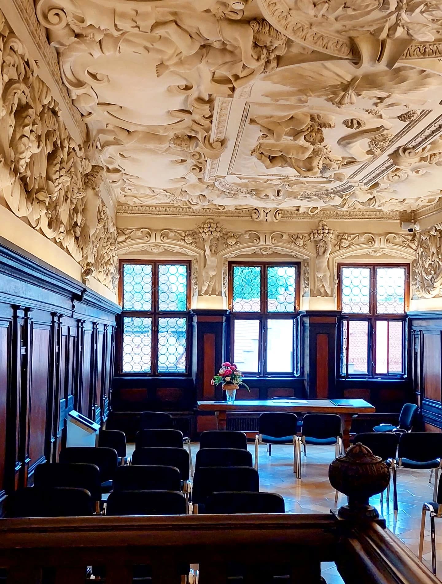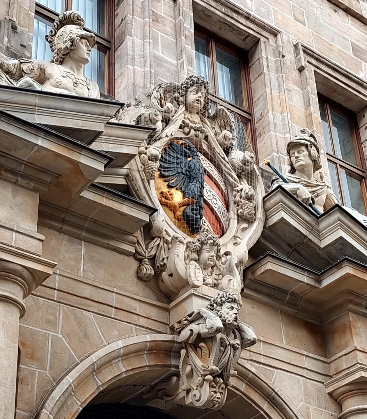 No fue hasta finales del siglo XVI cuando se empezó la construcción del imponente edificio tardo-renacentista que hoy vemos en la Burgstrasse, con sus dinteles imponentes que representan las armas de la ciudad y del Sacro Imperio Romano Germánico, ambos obra del escultor Leonhard Kern (1617).