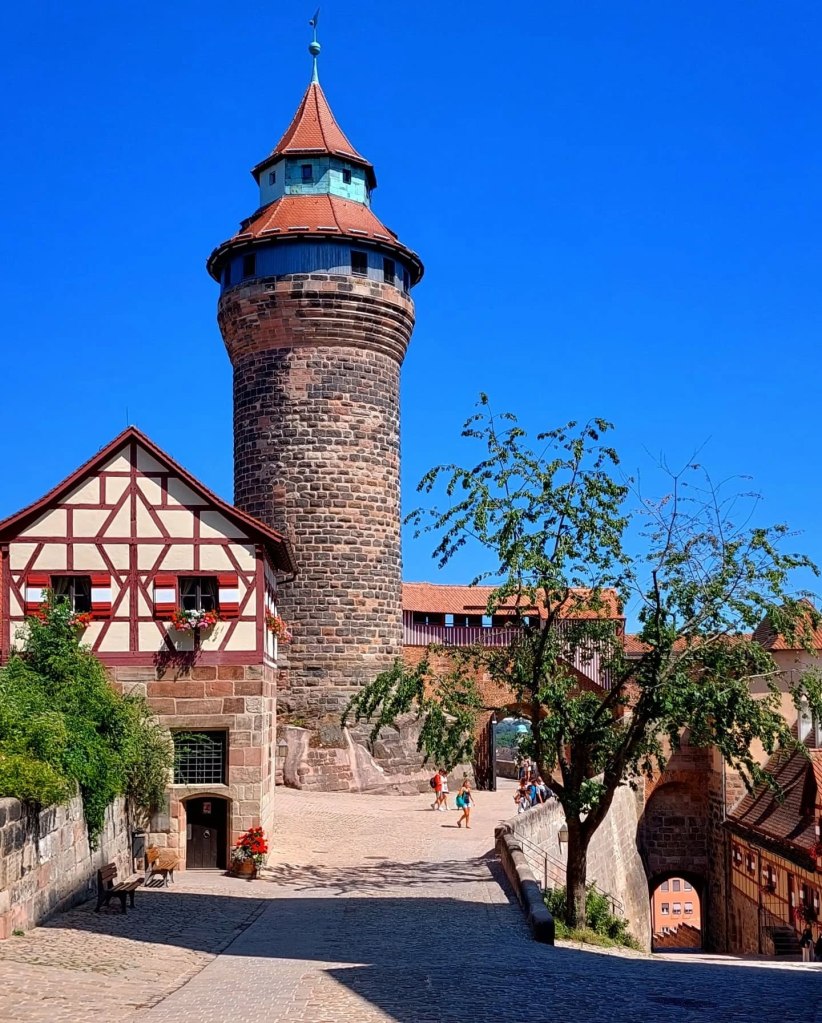 Dentro del castillo destaca sobre el resto de edificios, es más, diría que sobre toda la ciudad, la Torre del Pecado (Sinwelturm), una torre redonda de mampostería. Subiendo por sus cien escalones de madera llegas al piso superior, que a su vez es la cota más alta del centro histórico de Núremberg, punto de referencia y el lugar con mejores vistas de toda la ciudad.