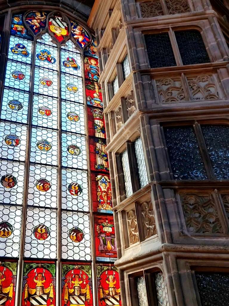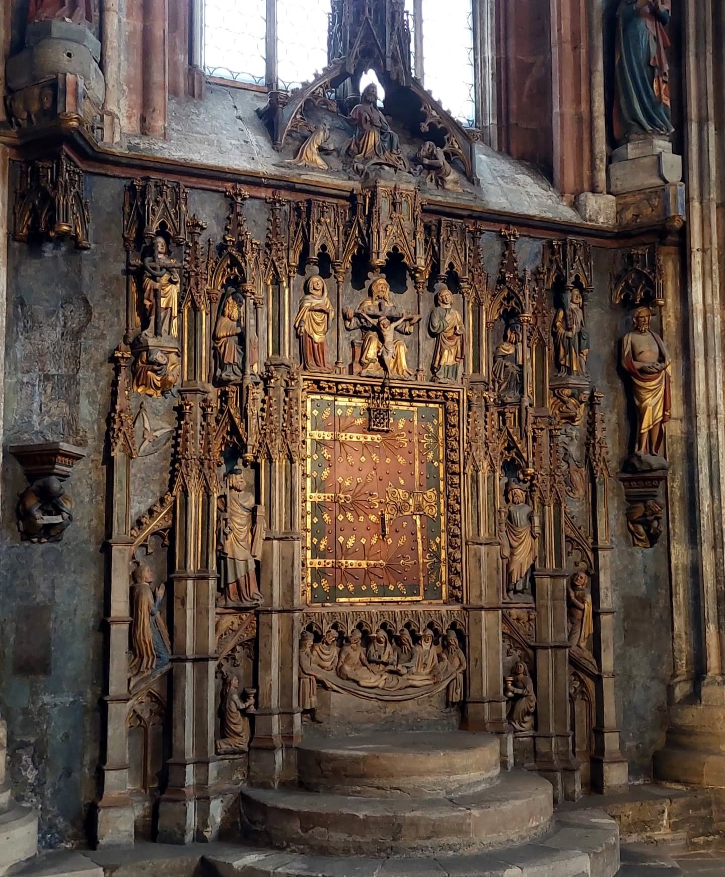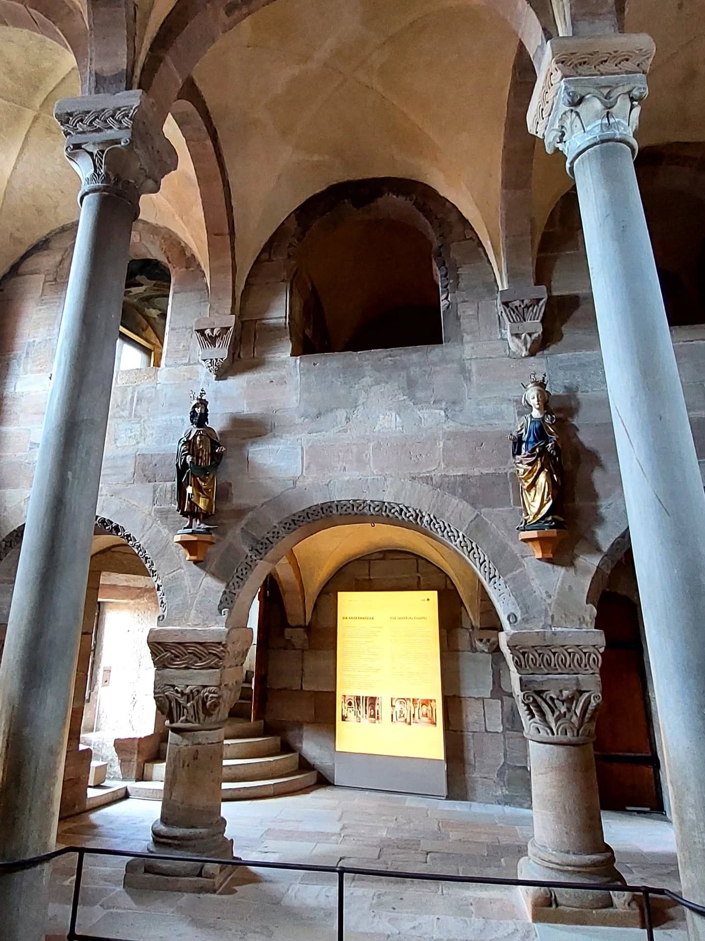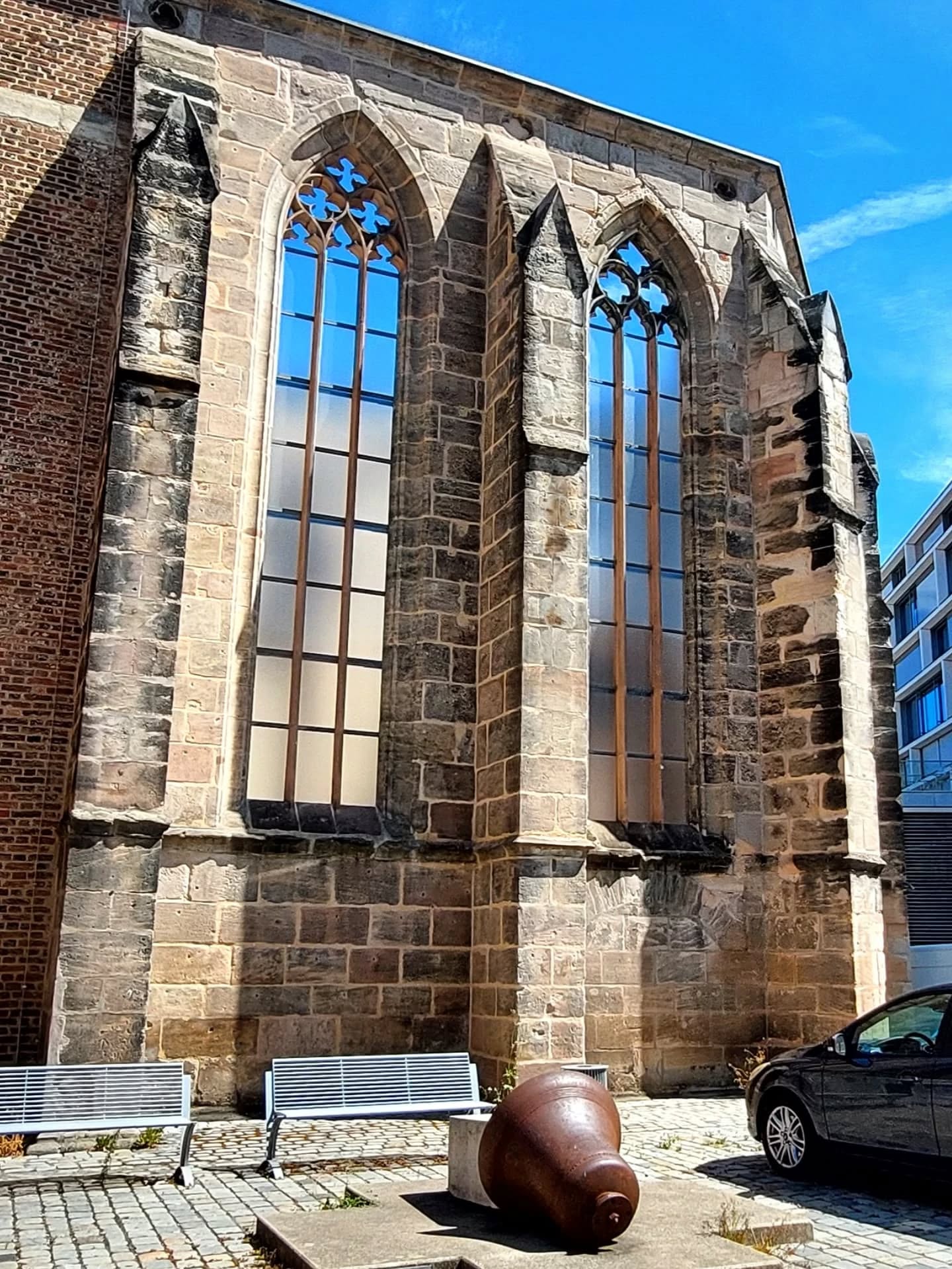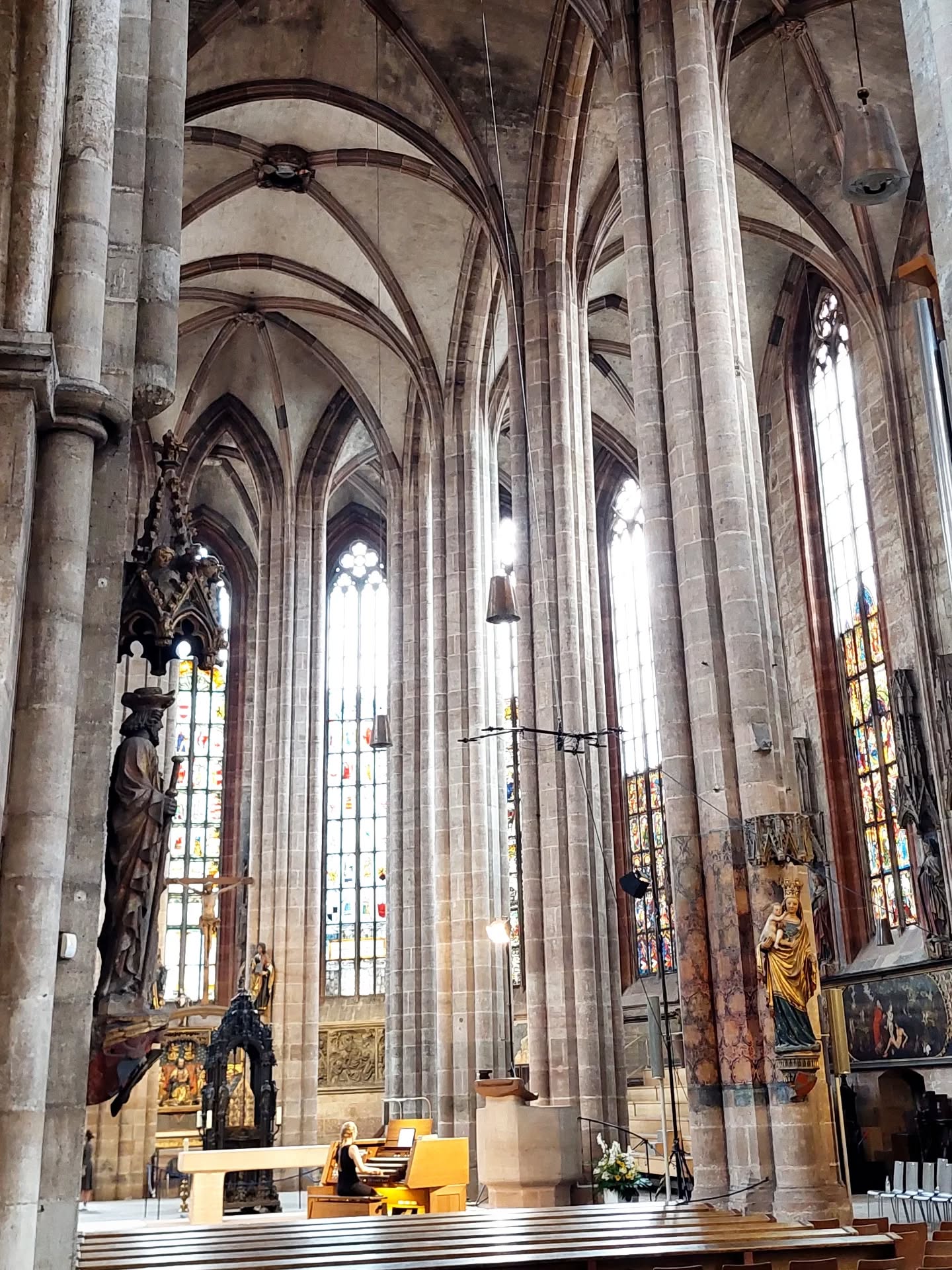 Luminosa y espaciosa en su interior gracias a sus grandes vidrieras, destaca en el Coro el imponente sagrario de Adam Krafft (1490), una creación fantástica que se eleva hasta el crucero del ábside (y donde el mismo artista se representó en su base). Elementos góticos y renacentistas, como la escalinata del órgano, se funden en este bonito edificio que fue muy dañado en enero de 1945 y que fue reconstruido tal cual era en su momento de esplendor.