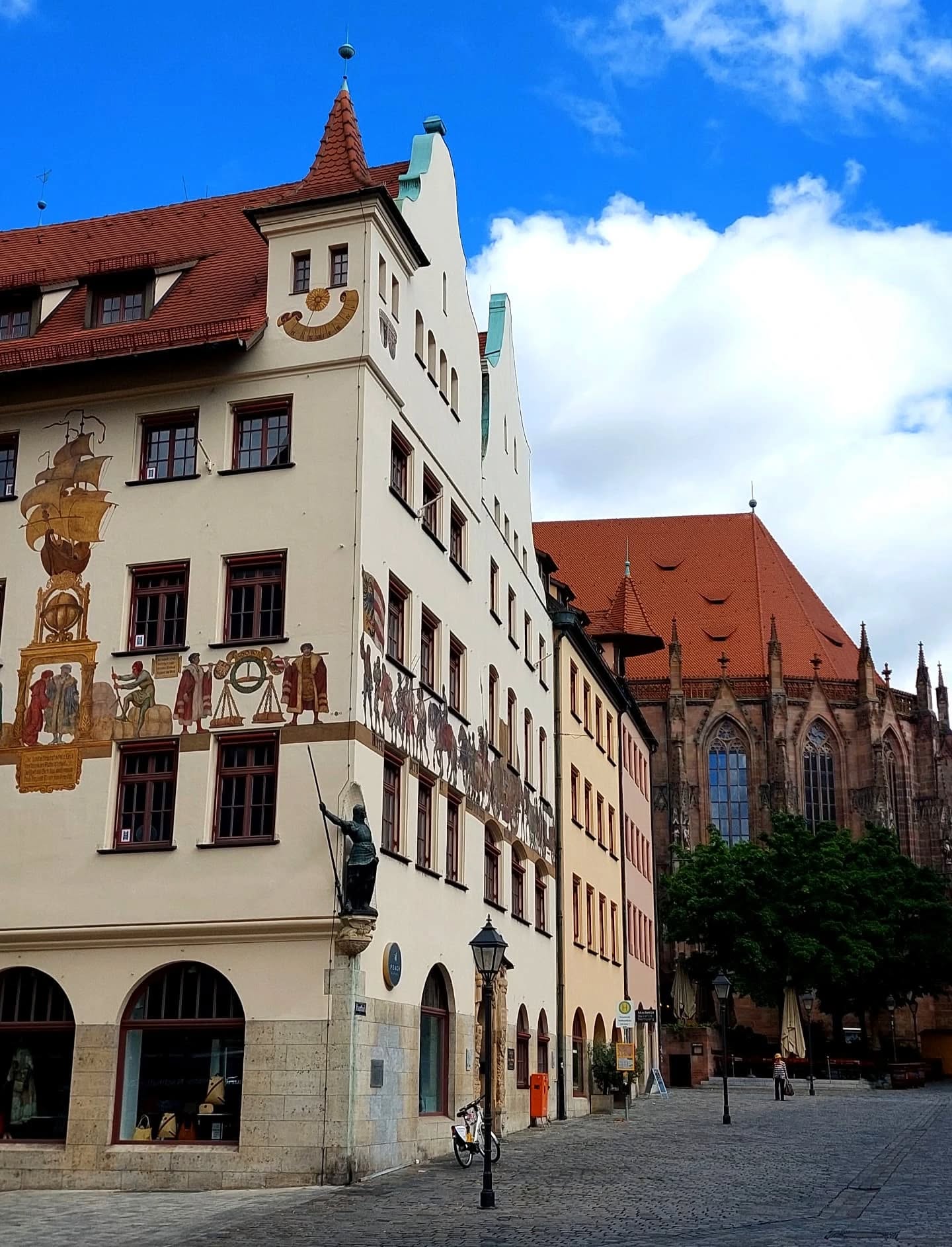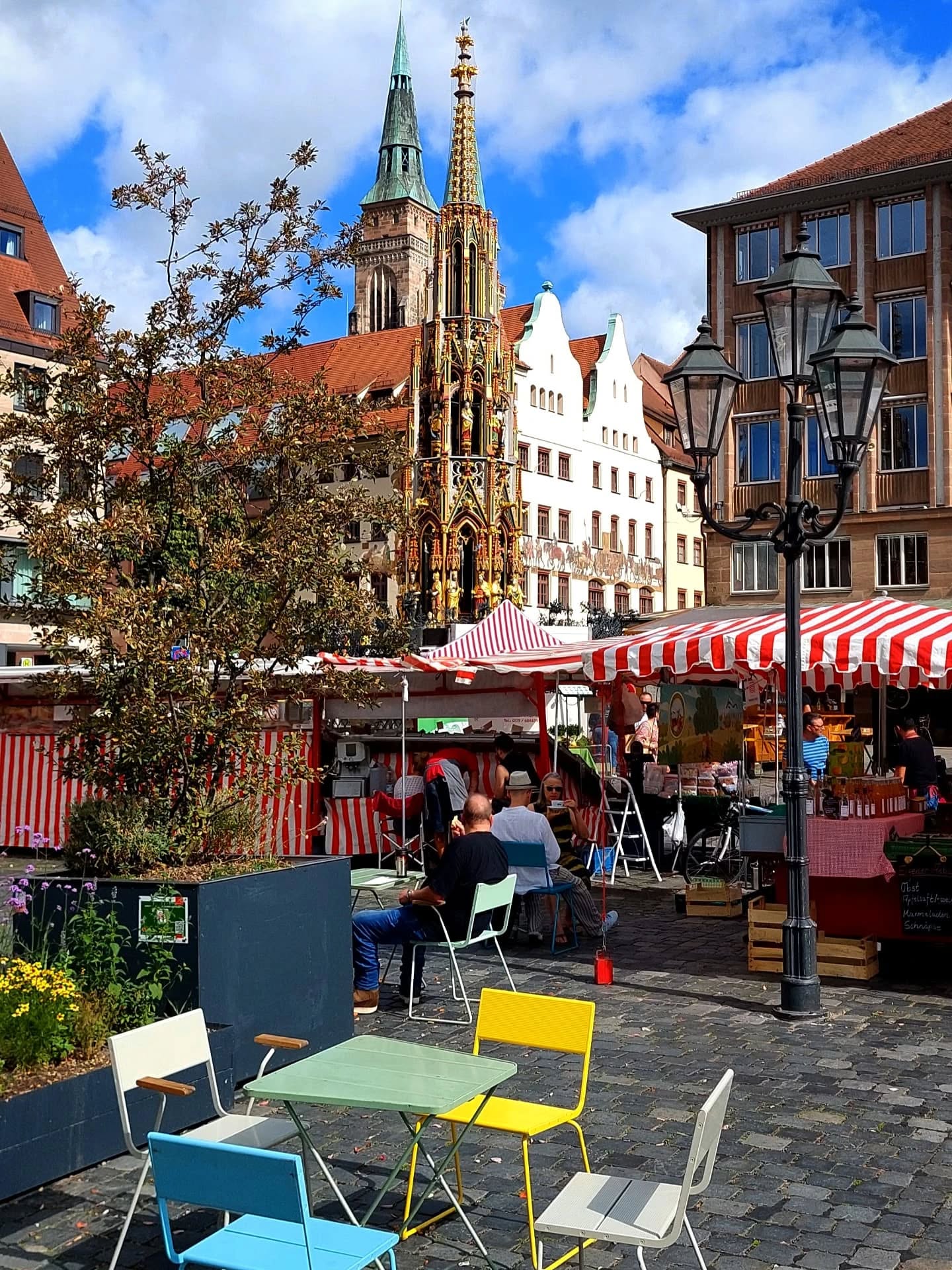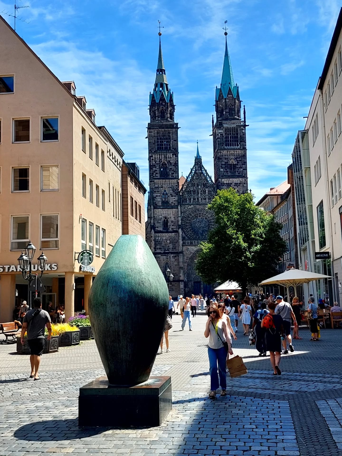 En ella destacan la preciosa iglesia católica de Nuestra Señora (Frauenkirche), obra gótica del siglo XV reconstruida tras la Segunda Guerra Mundial, con su famoso carrillón; la Cámara de Comercio con su fresco en la fachada de la Caravana de los Mercaderes y la Schöner Brunnen, una fuente gótica del siglo XIV que llaman maravillosa por su bonita factura y colorido.