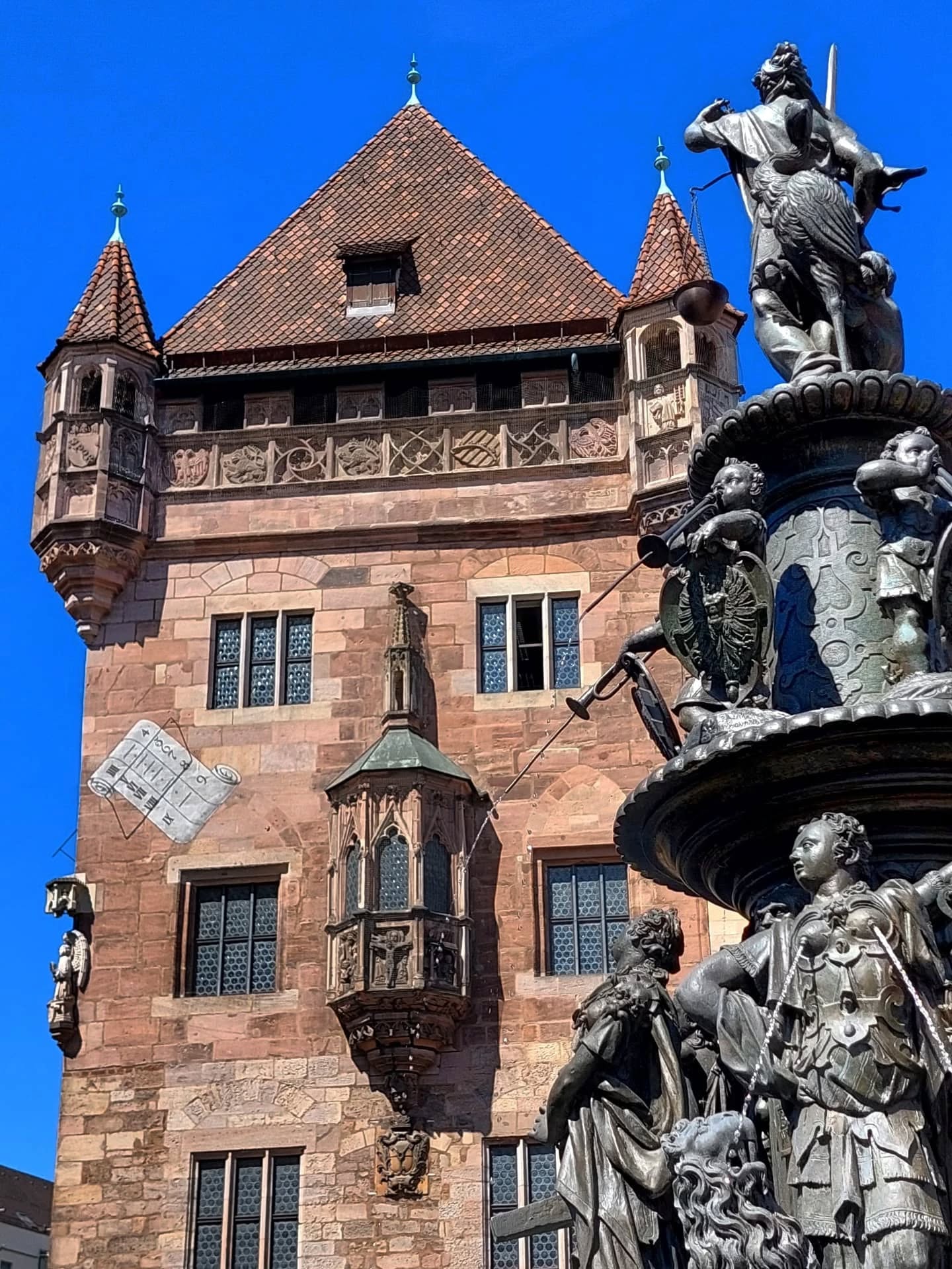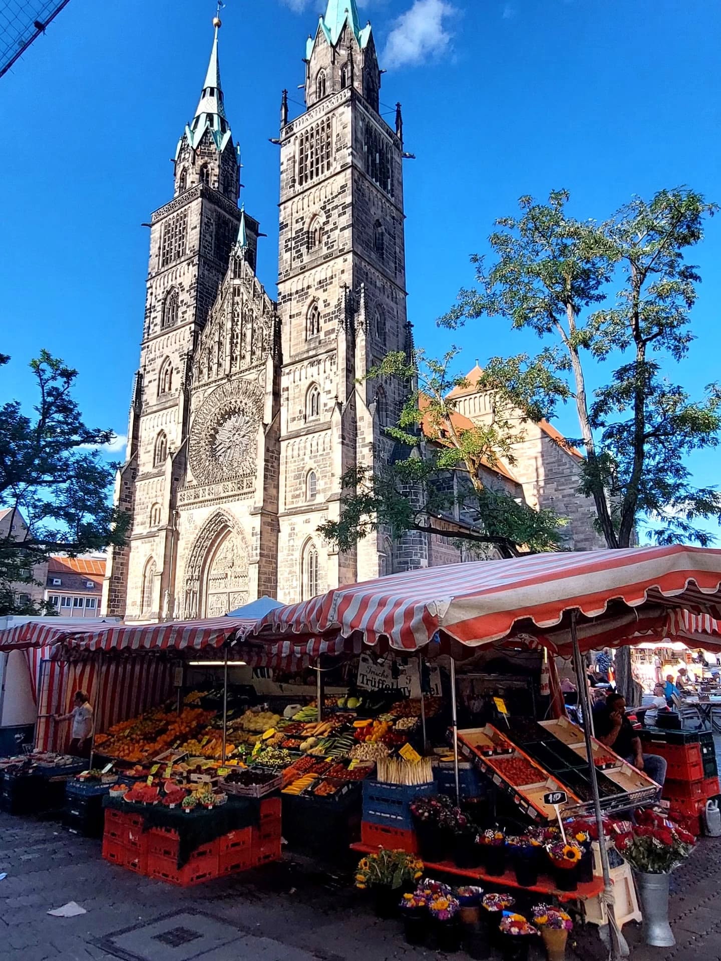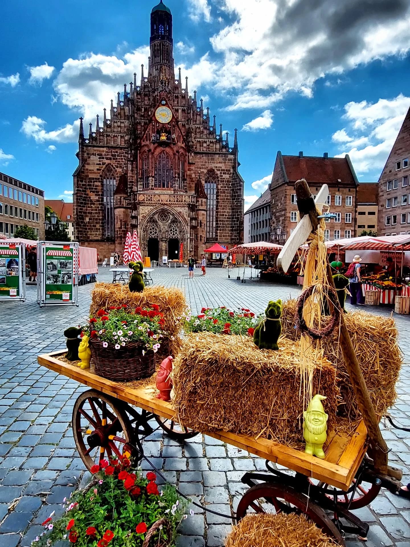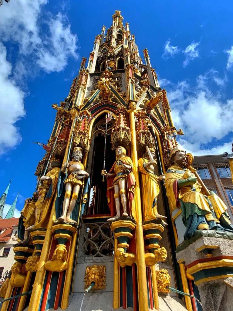 En ella destacan la preciosa iglesia católica de Nuestra Señora (Frauenkirche), obra gótica del siglo XV reconstruida tras la Segunda Guerra Mundial, con su famoso carrillón; la Cámara de Comercio con su fresco en la fachada de la Caravana de los Mercaderes y la Schöner Brunnen, una fuente gótica del siglo XIV que llaman maravillosa por su bonita factura y colorido.