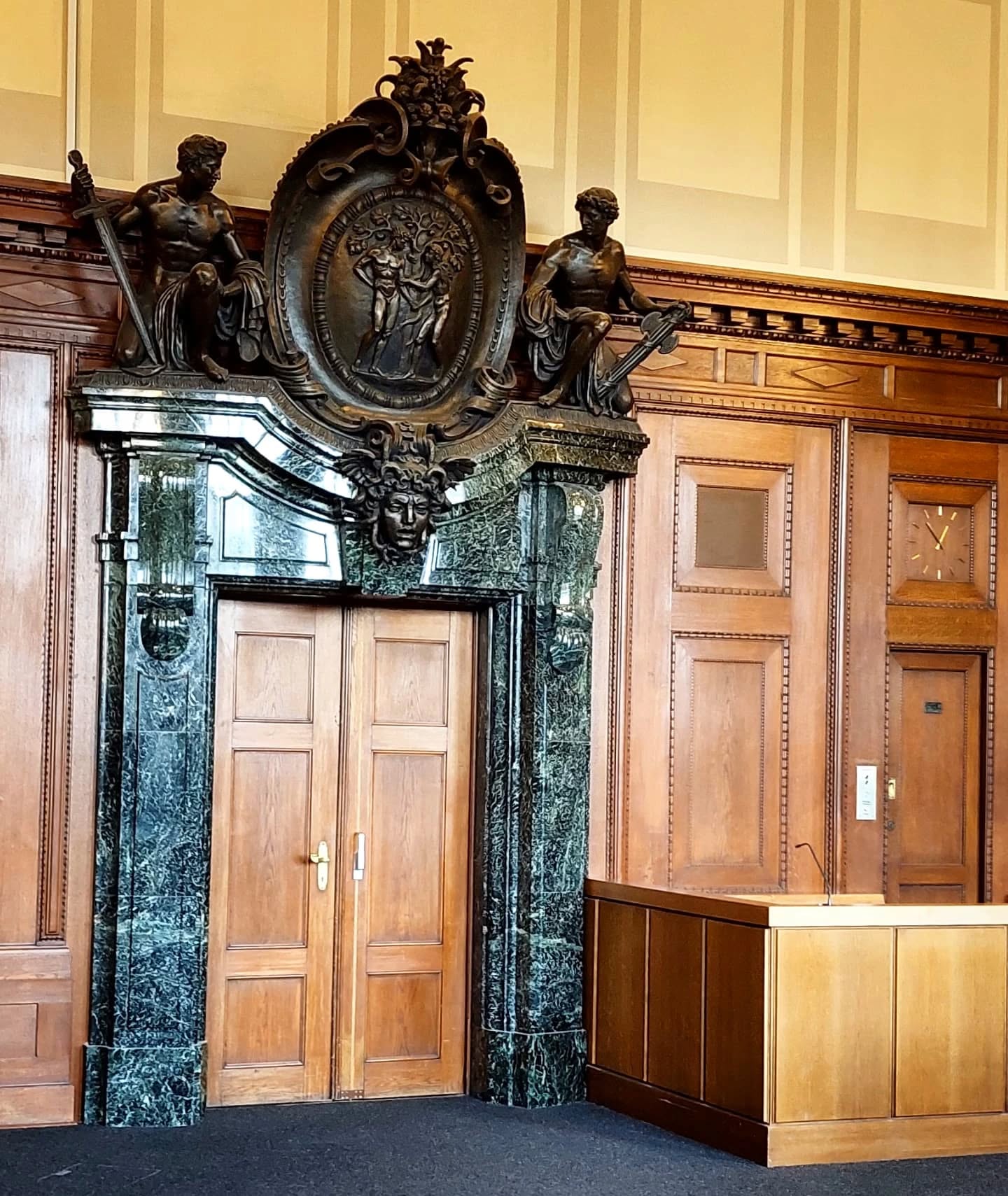 Por esta banqueta junto a la gran puerta de acceso, con su ascensor directo entre el penal y la Sala 600 del juzgado, pasaron monstruos de la talla de Hermann Göring, Joachim Von Ribbentrop, Wilheim Keitel, Albert Speer, etc., escuchando a los 240 testigos y las cerca de 300.000 declaraciones que confirmaron los horrores del régimen nazi y sus innumerables crímenes de guerra. Los jueces militares de UK, EEUU, URSS y Francia condenaron a muerte a once de ellos (algunos cobardes como Göring se suicidaron antes de ser ejecutados), otros más fueron encarcelados a cadena perpetua o cargaron con penas de veinte años de prisión. Sin duda alguna, la Sala 600 del Palacio de Justicia de Núremberg es uno de esos lugares marcados en la Historia de la Humanidad.