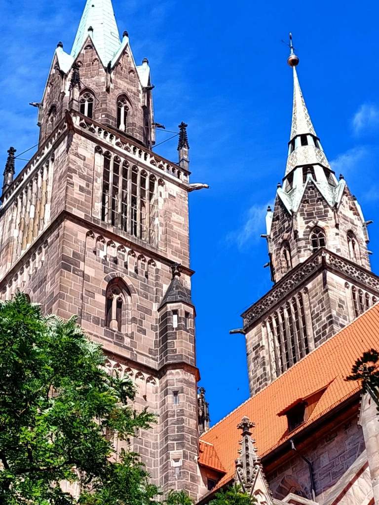 La Iglesia de San Lorenzo es uno de los iconos de la ciudad, visible desde muchos puntos al estar ubicada en la cota más alta de la colina al sur del Pegnitz. Su construcción se concluyó alrededor del 1400 en estilo gótico tardío alemán. Junto a San Sebaldo, el templo fue de los primeros en adoptar la fe luterana. en 1525, pero también conservó toda su decoración previa por decisión del Consejo de la Ciudad.