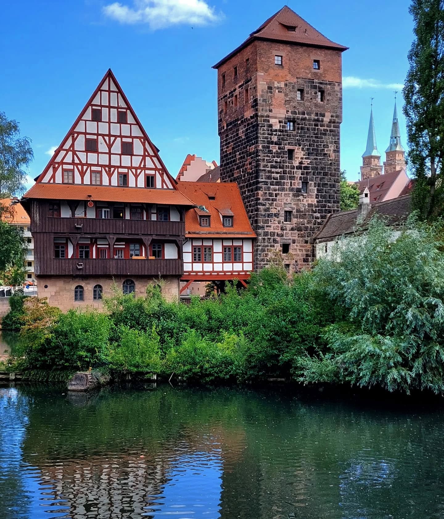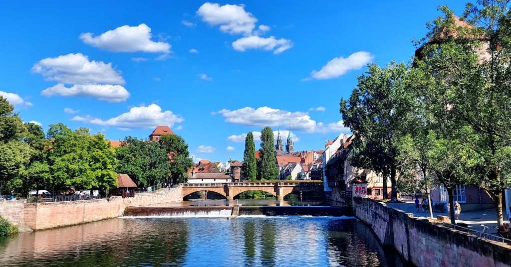 El Pegnitz es el río que cruza la ciudad antigua y divide en dos el centro histórico de Núremberg. Nace en la Alta Franconia y sus aguas afluyen hasta el Meno, que a su vez lo hace en el Rin. Por mediación de canales artificiales, este río también está conectado con la cuenca del Danubio, un factor determinante en el desarrollo comercial de la ciudad desde la Edad Media.