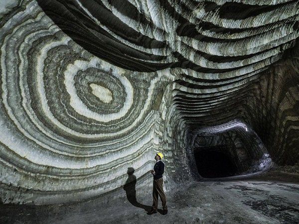 También, por analogía con los procesos ya descritos, es evidente que el agua del Mediterráneo estuvo en épocas anteriores mucho más caliente que ahora, siendo la situación más extrema la que ocurrió durante el periodo denominado Messiniense, hace unos 7 millones de años. En aquel momento, la conjunción entre la evolución climática (un periodo muy cálido, ver la gráfica superior de la Figura 1) y un proceso tectónico (el cierre del estrecho de Gibraltar por el empuje hacia el Norte de la placa africana) tuvo como consecuencia que el Mediterráneo quedase aislado del Atlántico. La temperatura del agua se elevó tanto que llegó a evaporarse por completo, quedando en seco, como una inmensa salina. Los estratos que se depositaron en el fondo del mar durante aquella desecación, son hoy explotados mediante minería subterránea para la obtención de sal, como por ejemplo en el yacimiento de Realmonte, cerca de Agrigento, en Sicilia (ver Figura 9).
