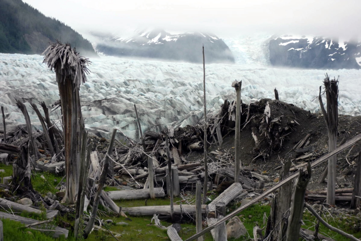 Existen numerosas pruebas de que durante el óptimo climático medieval (aproximadamente entre los años 900 y 1100), se alcanzaron temperaturas superiores a las actuales, como lo demuestran los restos de vegetación y de construcciones que el hielo glaciar cubrió en su avance durante la Pequeña Edad de Hielo, y que ahora están quedando al descubierto al retroceder como consecuencia del calentamiento actual. Así, por ejemplo, la Figura 3 muestra tocones y restos de árboles de 1.300 años de antigüedad, en el frente del glaciar de La Perouse (Alaska), donde el avance del hielo durante la Pequeña Edad del Hielo enterró árboles que estaban vivos durante el óptimo climático medieval. Sin embargo, estas oscilaciones, que supusieron aumentos y descensos del orden de 2º a 3ºC en la temperatura media del planeta, han sido eliminadas en la gráfica inferior de la Figura 2.